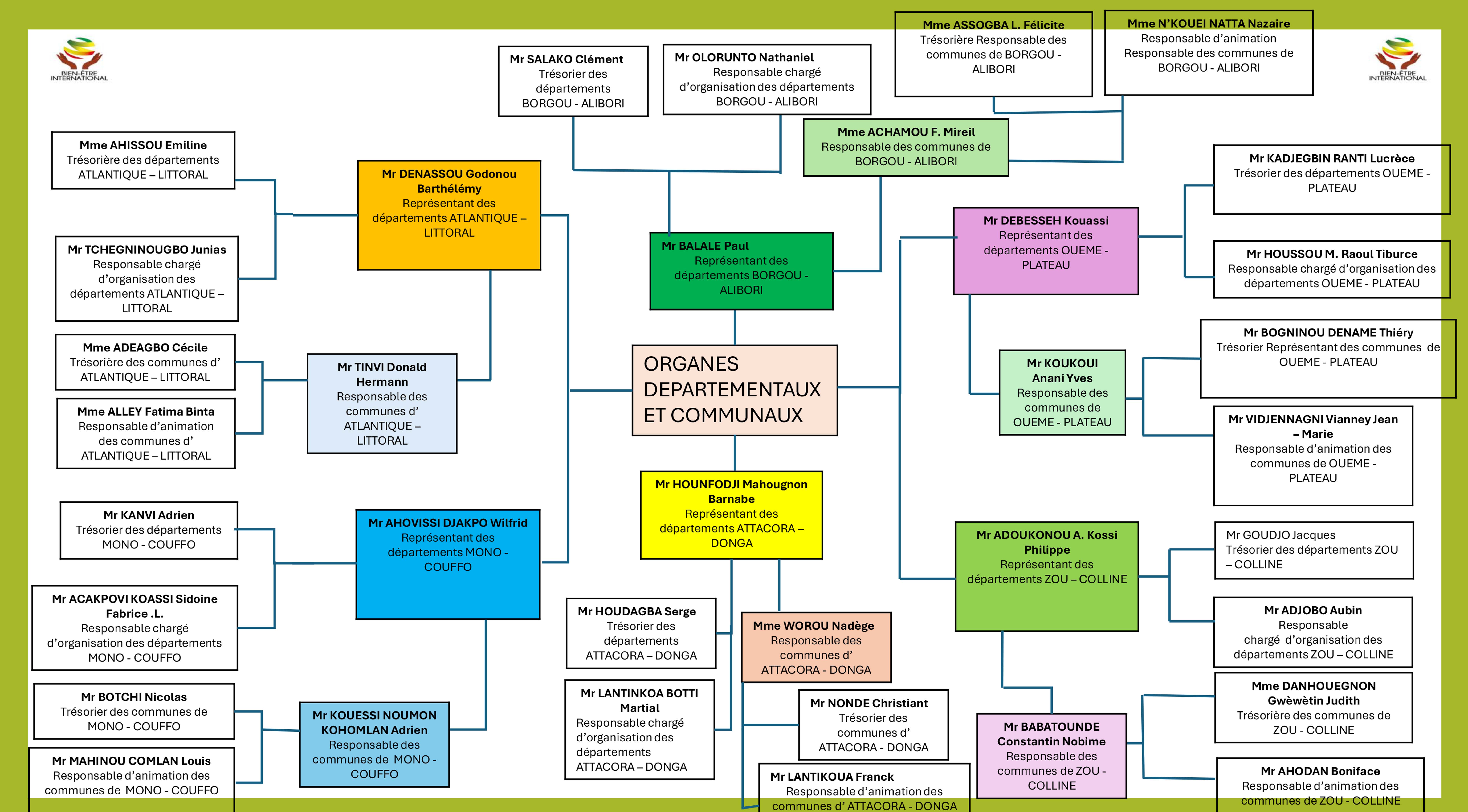 Bien-Être International renforce significativement sa présence au Bénin avec la mise en place d'une structure organisationnelle complète couvrant l'ensemble du territoire national. Cette nouvelle organisation territoriale permettra à l'ONG de déployer ses actions humanitaires avec une efficacité accrue et une réelle proximité avec les populations bénéficiaires.